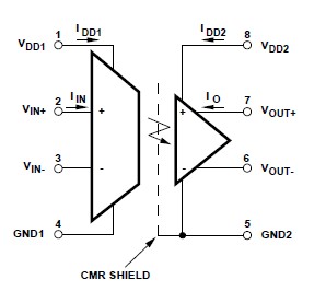 The HCPL-7800A-300E is a High CMR Isolation Amplifier. The HCPL-7800A-300E high CMR isolation amplifier provides a unique combination of features ideally suited for motor control circuit designers. The HCPL-7800A-300E provides the precision and stability needed to accurately monitor motor current in highnoise motor control environments, providing for smoother control (less “torque ripple”) in various types of motor control applications.